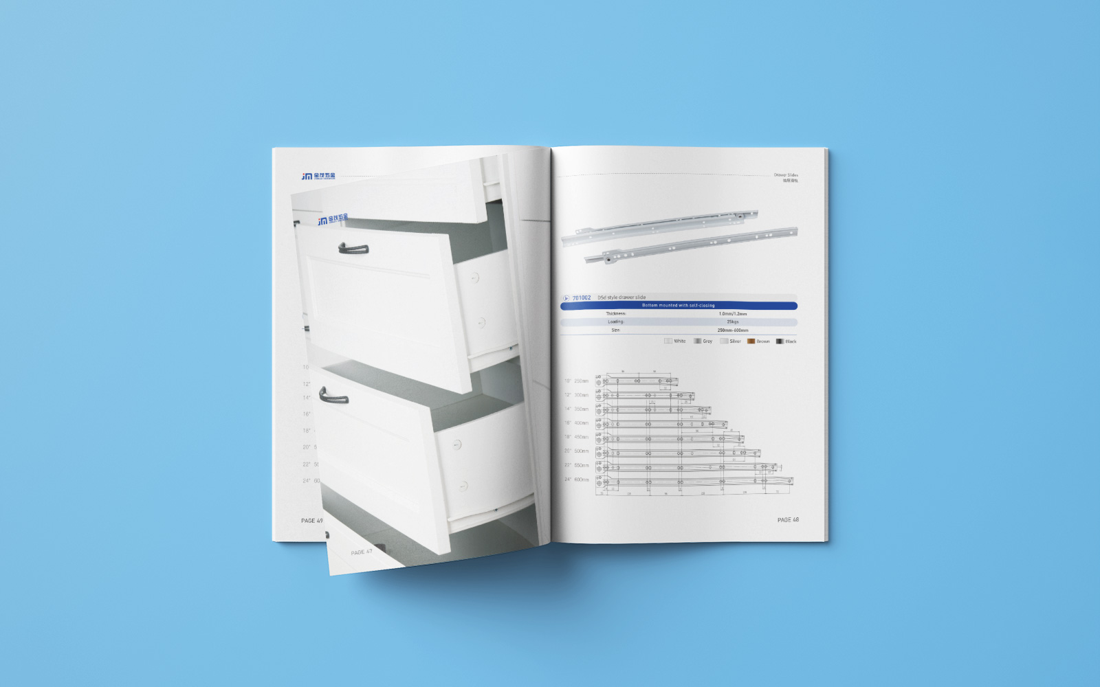 寧金茂五金有限公司成立于2000年5月,公司坐落于觀潮勝地--海寧鹽官,離上海港口約130公里。 公司占地面積32871平方米,員工530余人,其中,中高級技術管理人員100余人;擁有各類先進的生產設備和自動流水線,專業從事各類滑軌、支架、貨架、家具配件等產品的研發,制造和銷售,年生產能力達到數千萬套產品;通過完善的質量保證和6S現場管理體系,贏得國內外客戶的好評,產品遠銷歐美市場。