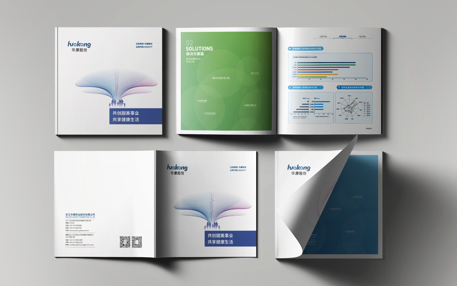 基于華康藥業的市場定位及受眾導向,本冊通過以下三個方面全面提升企業形象,展示企業實力:一是面向市場與消費者,通過行業動向、政策導向及消費趨勢,引導出企業/品牌理念、價值、主張,強調企業的戰略高度與社會責任;二是系統性介紹企業整體情況,全方位展示企業科研實力、技術優勢、專利資質、全系列產品、應用領域等,突顯企業的全球視野及行業地位;三是展望未來,交代企業的發展方向與整體規劃。