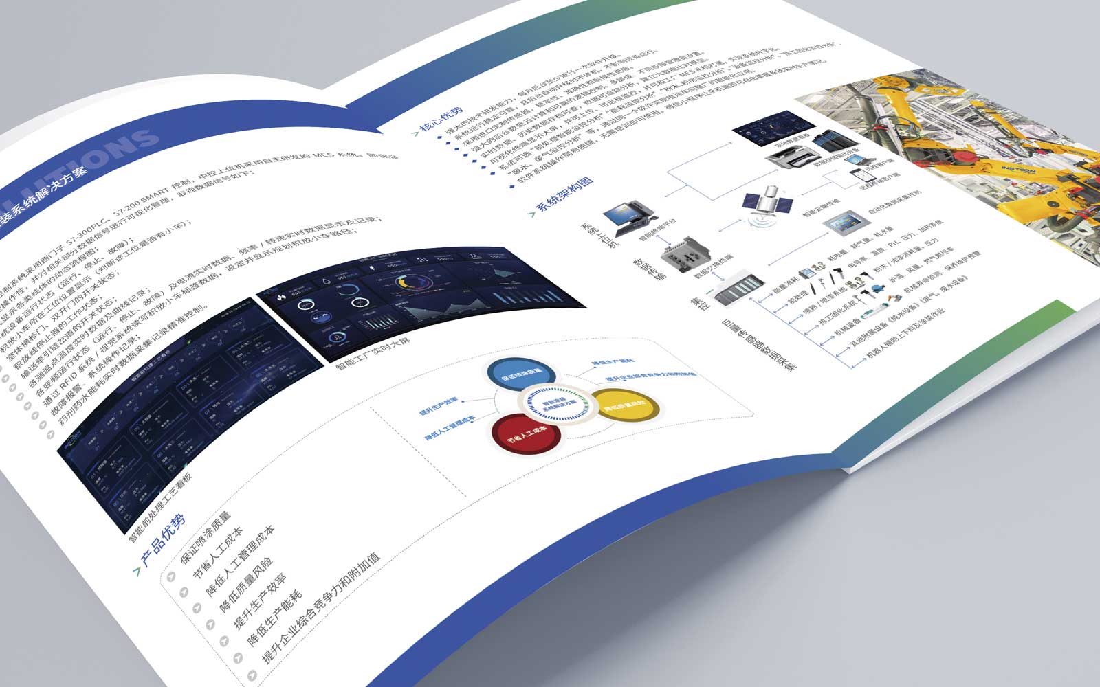 機電工程公司的產品屬于冷冰冰的機器,企業樣本如果想突破這樣的感覺,那么設計中就需要構思一些元素,使企業樣本設計不至于像一塊板磚。
