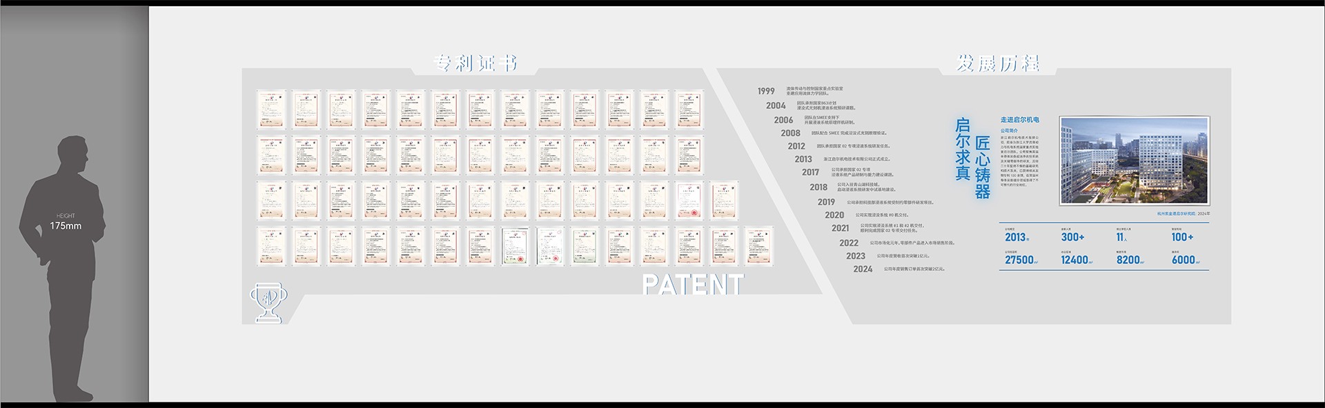 2. 序廳(品牌形象區(qū))設(shè)計元素:采用高科技感的LED大屏播放公司宣傳片,結(jié)合動態(tài)光影效果,營造震撼的視覺效果。墻面設(shè)置企業(yè)形象墻,展示公司歷史沿革、榮譽獎項及核心團(tuán)隊介紹。亮點:設(shè)置AR互動裝置,參觀者可通過手機或特定設(shè)備掃描二維碼,虛擬體驗公司發(fā)展歷程中的重要時刻。