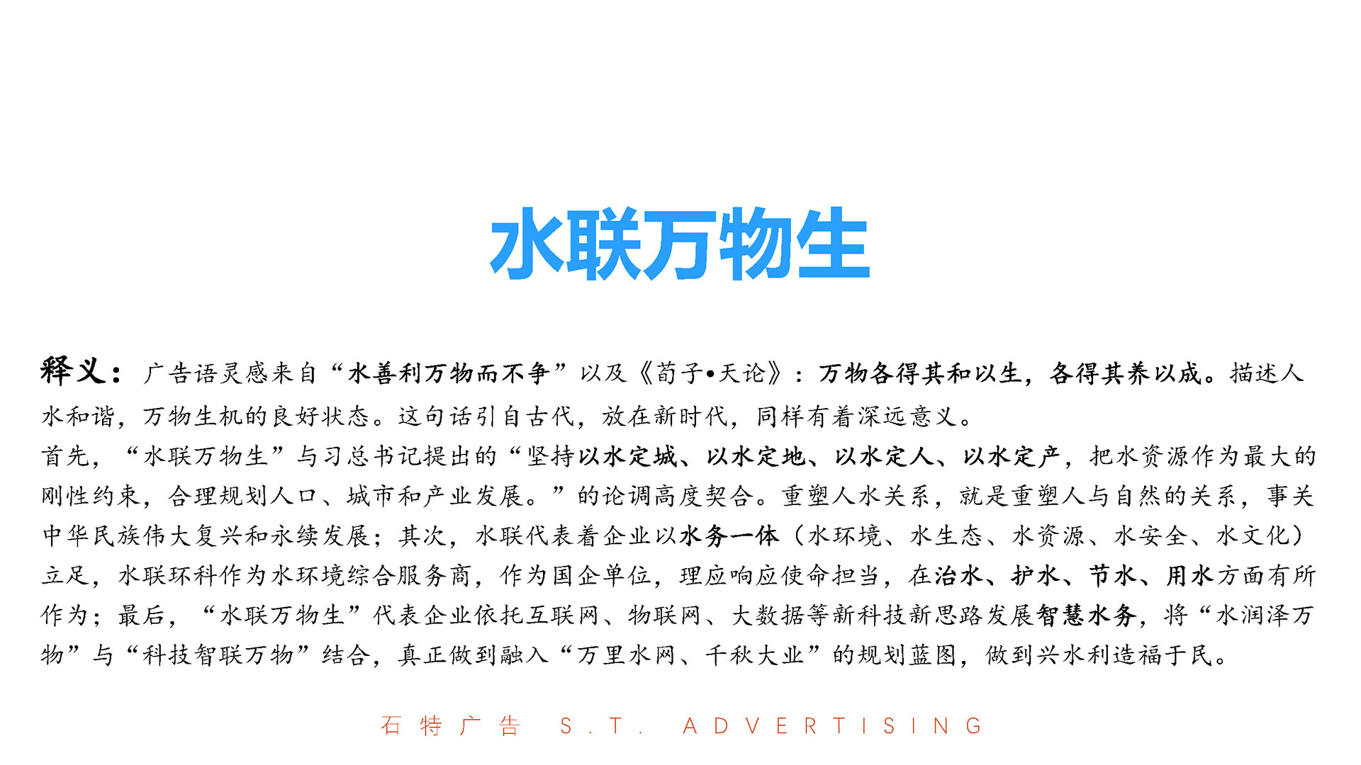 廣告語創意:主推“水聯萬物,智造未來”,副標“讓每一滴水都承載科技力量”,強化科技屬性與行業領導力。