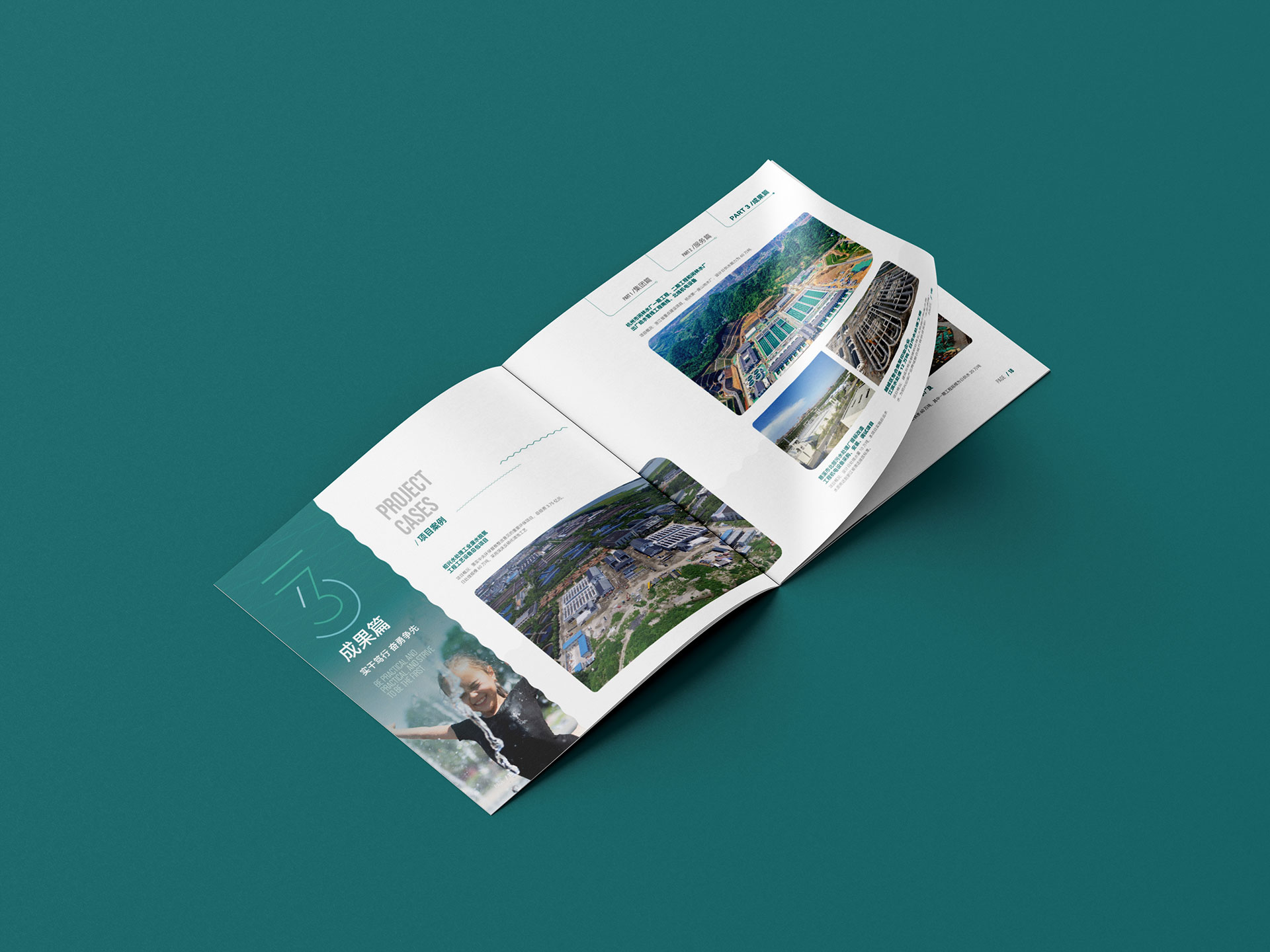 宣傳畫冊策劃:內頁以“技術實力+工程案例”為核心,采用數據可視化圖表展示產品性能(如ISO認證體系、年均銷售增長曲線),搭配實景工程圖片增強可信度。