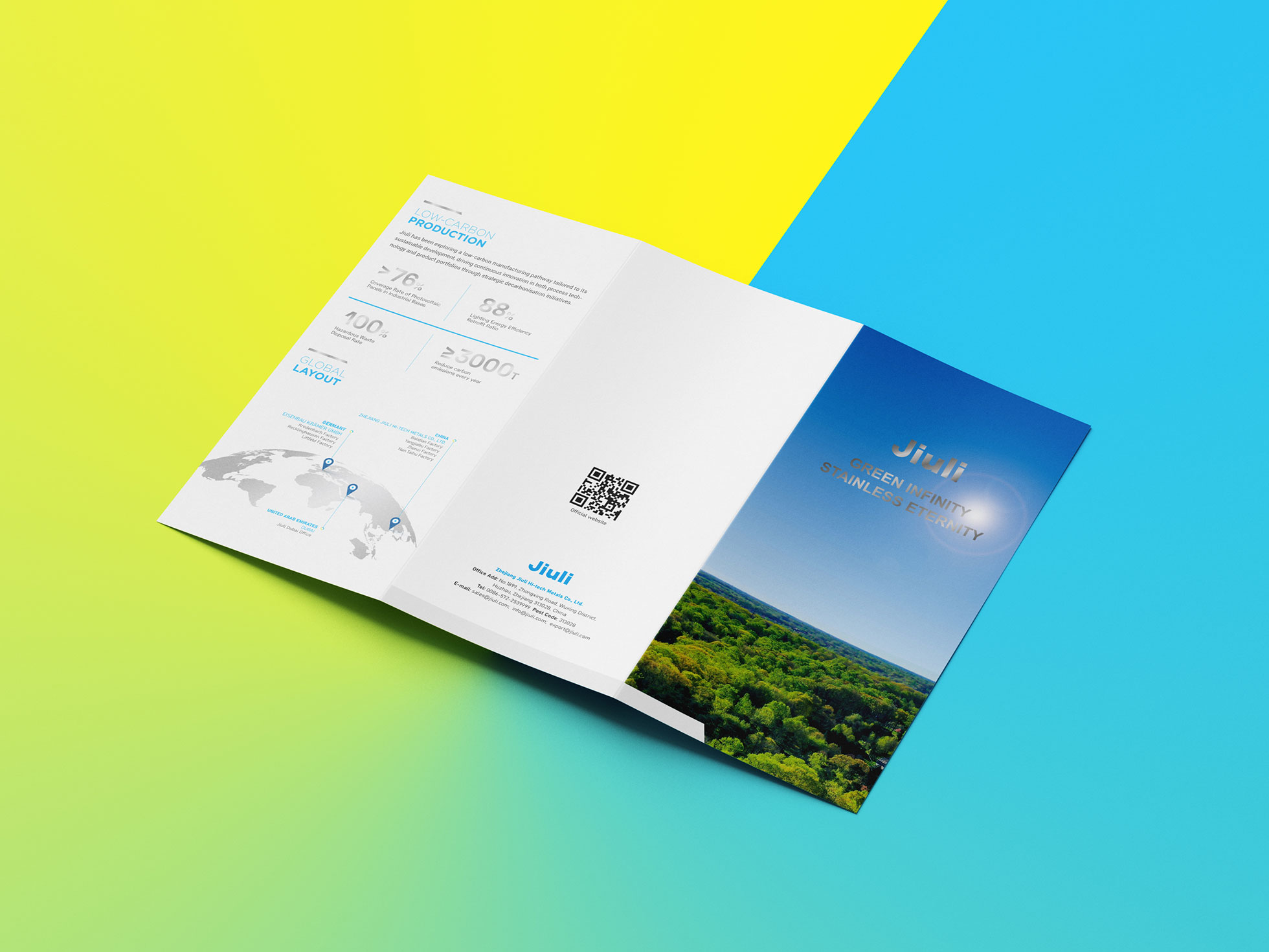 本項目是石特廣告為上市公司浙江久立特材科技股份有限公司量身定制的中英文雙語精品三折頁。面對全球高精尖材料市場的競爭格局,久立特材需要一款既能彰顯企業科技實力與品牌高端形象,又便于在國內外展會、客戶拜訪中高效傳遞核心信息的宣傳利器。石特廣告以“戰略濃縮,價值傳遞”為核心理念,將復雜的技術與產品體系,凝練于一方精致的折頁之中。它不僅是內容的載體,更是一件融合頂級印刷工藝與數字化接口的品牌藝術品,完美實現了線下實體體驗與線上數字拓展的無縫連接。