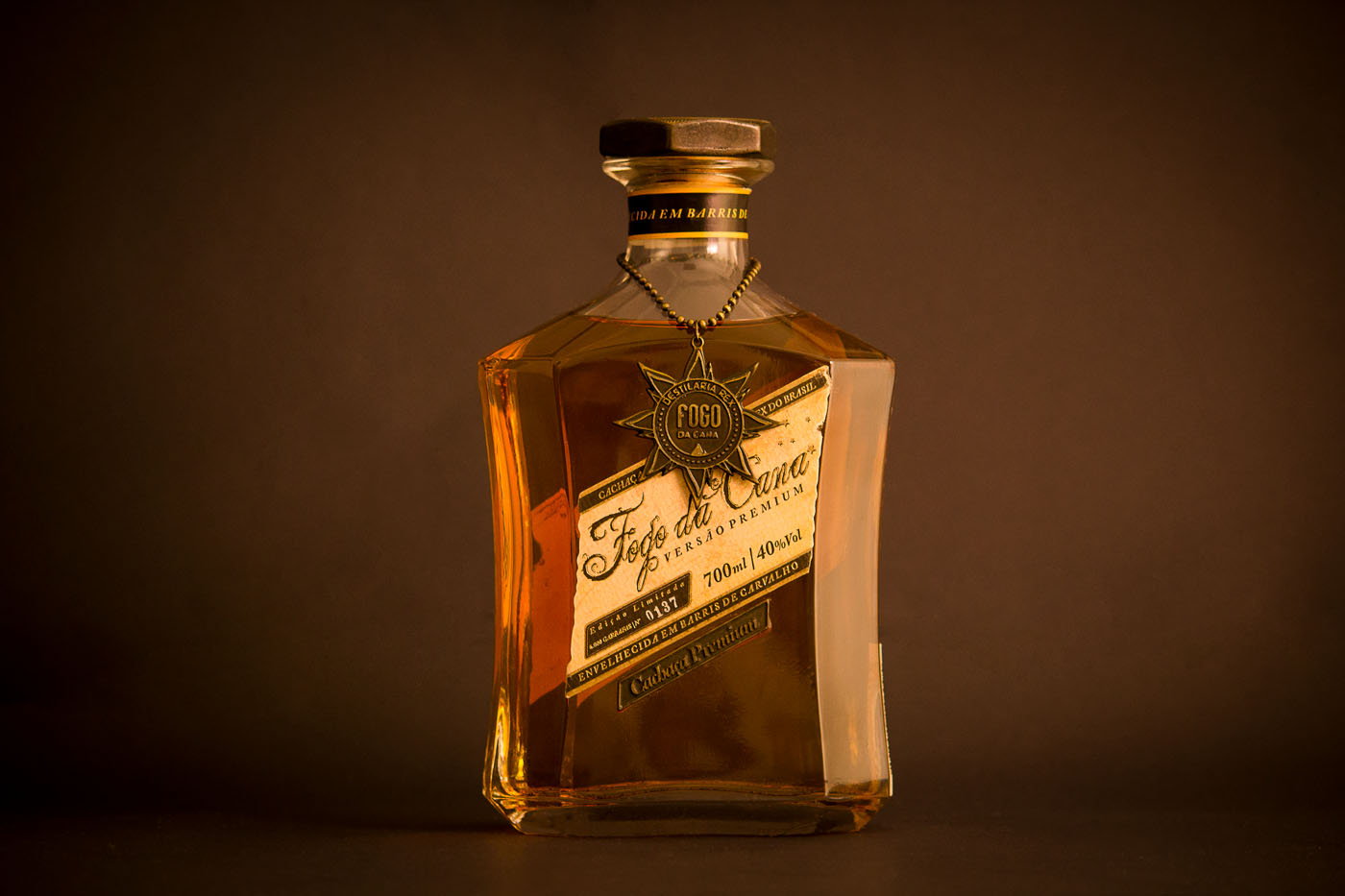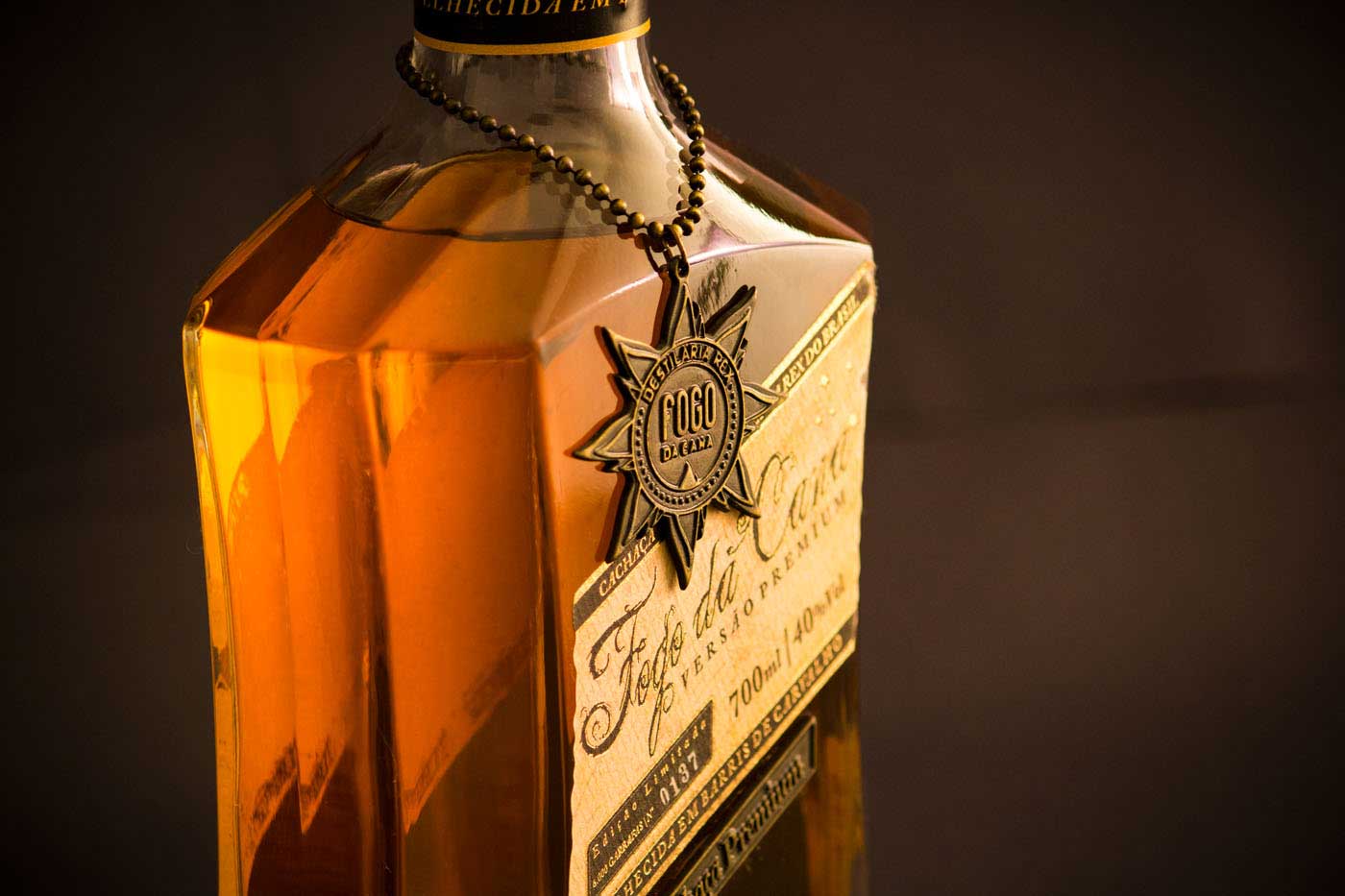 品牌的標志是經過精心設計的充滿復古感的字體,為了突出巴西高檔酒的尊貴,我們為它的包裝設計了獨特的瓶形和木箱。此外,這款高檔酒數量有限,是限量版,所以每個產品標簽上都有編號,并已完成燙金工藝,個性化地定制金屬蓋、精心制作的金屬標志垂飾以及酒本身火焰般的色彩都使包裝更加奢華和復古,豐富了產品的展示。