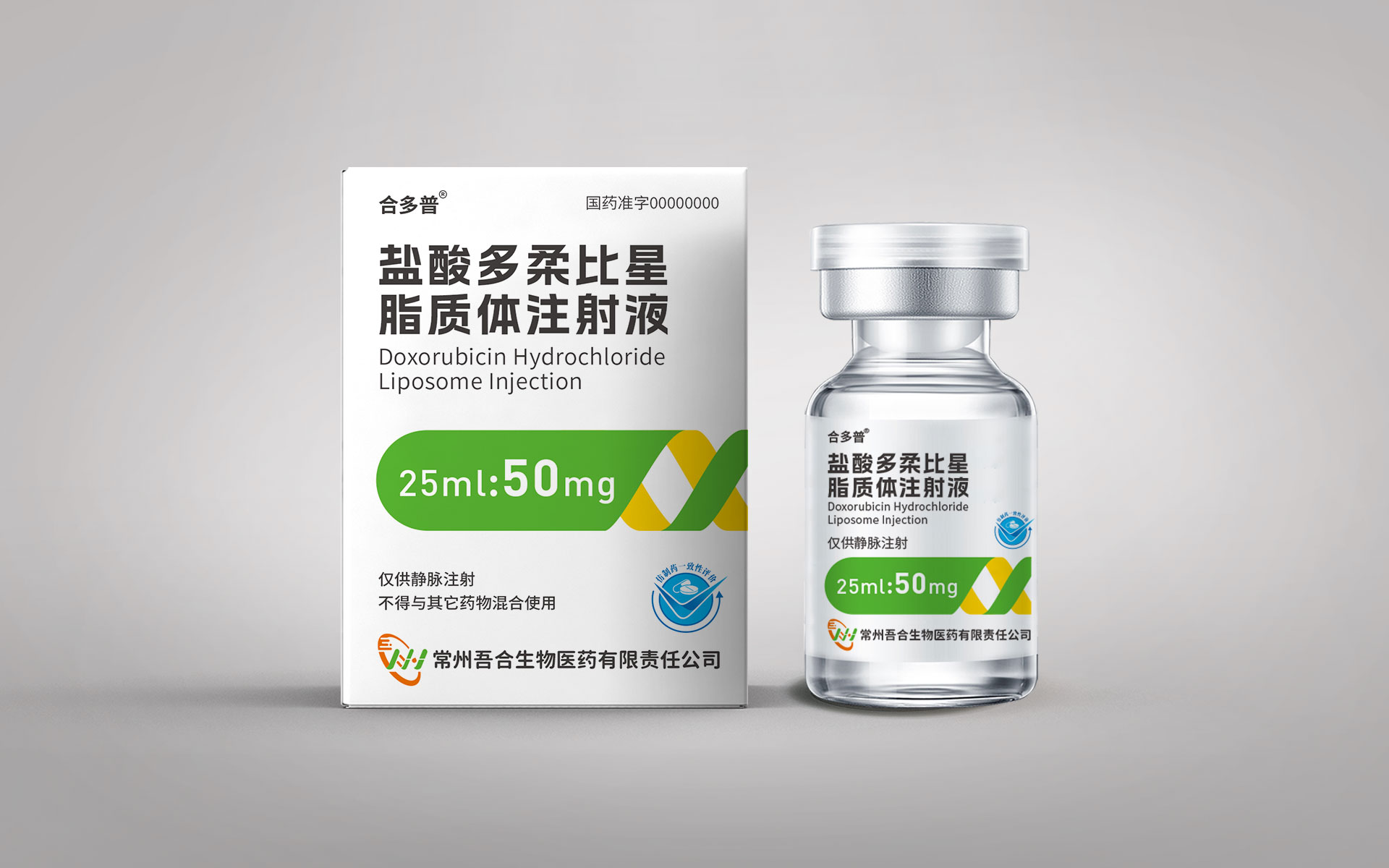 2.“鹽酸多柔比星脂質體注射液”產品包裝設計:10ml和25ml兩個規格產品各1套, 內容包含:說明書,瓶貼標簽,小盒,中盒,大盒。
