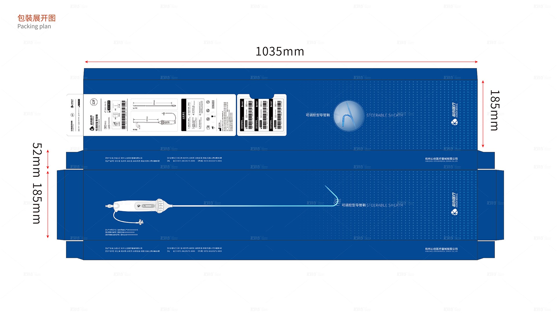可調控型導管鞘產品包裝設計之初有很多難點,比如產品體積大,產品實物外觀不好展示體現,產品長包裝外盒就需很長,要考慮到打開,運輸及外包上的畫面及主要信息的體現方式和順序位置等;石特團隊再經過詳細調研和了解后,很好的完成了該方案的設計,獲得了客戶高度認可與贊賞。