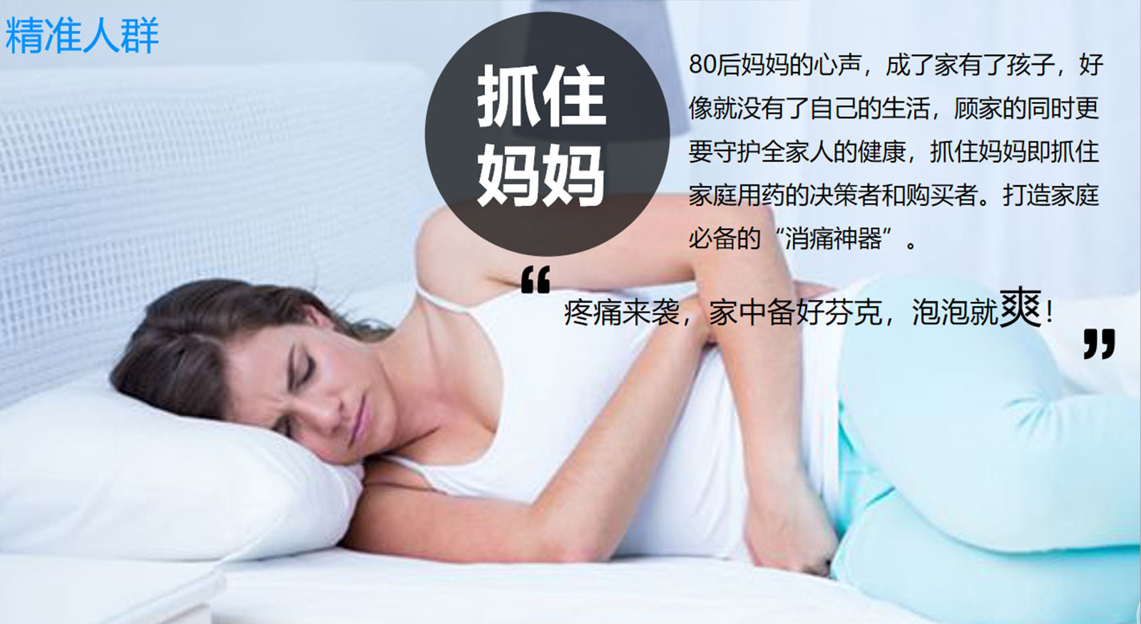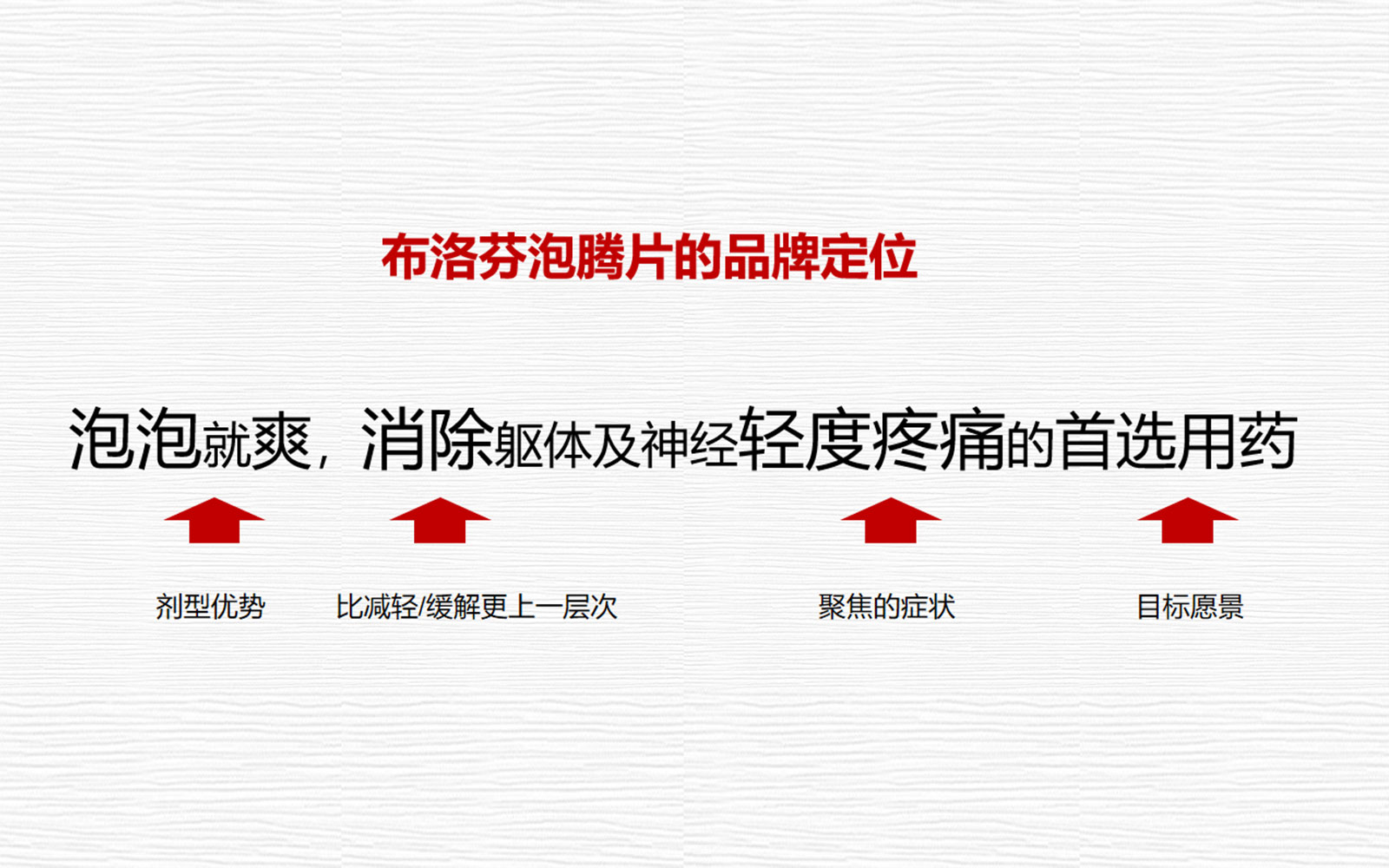 ⑥畫面右側(cè)的標尺從藍色漸變到紅色,配合視覺中心人體剪影的色彩,強調(diào)泡騰片緩解疼痛時間段、速度快的特點。