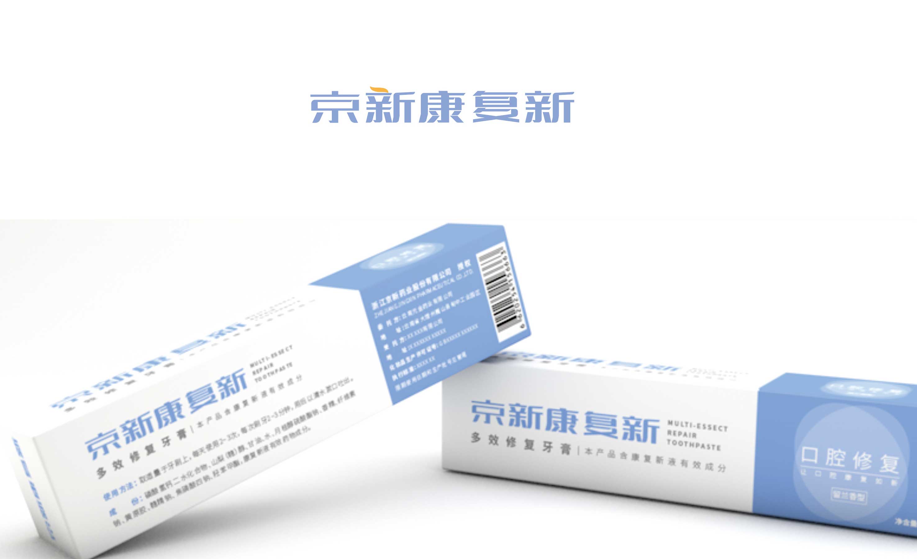 康復新牙膏,采用特殊生物提取物,能過修復口腔潰瘍破損面,加快愈合。LOGO設計為字體矢量設計。