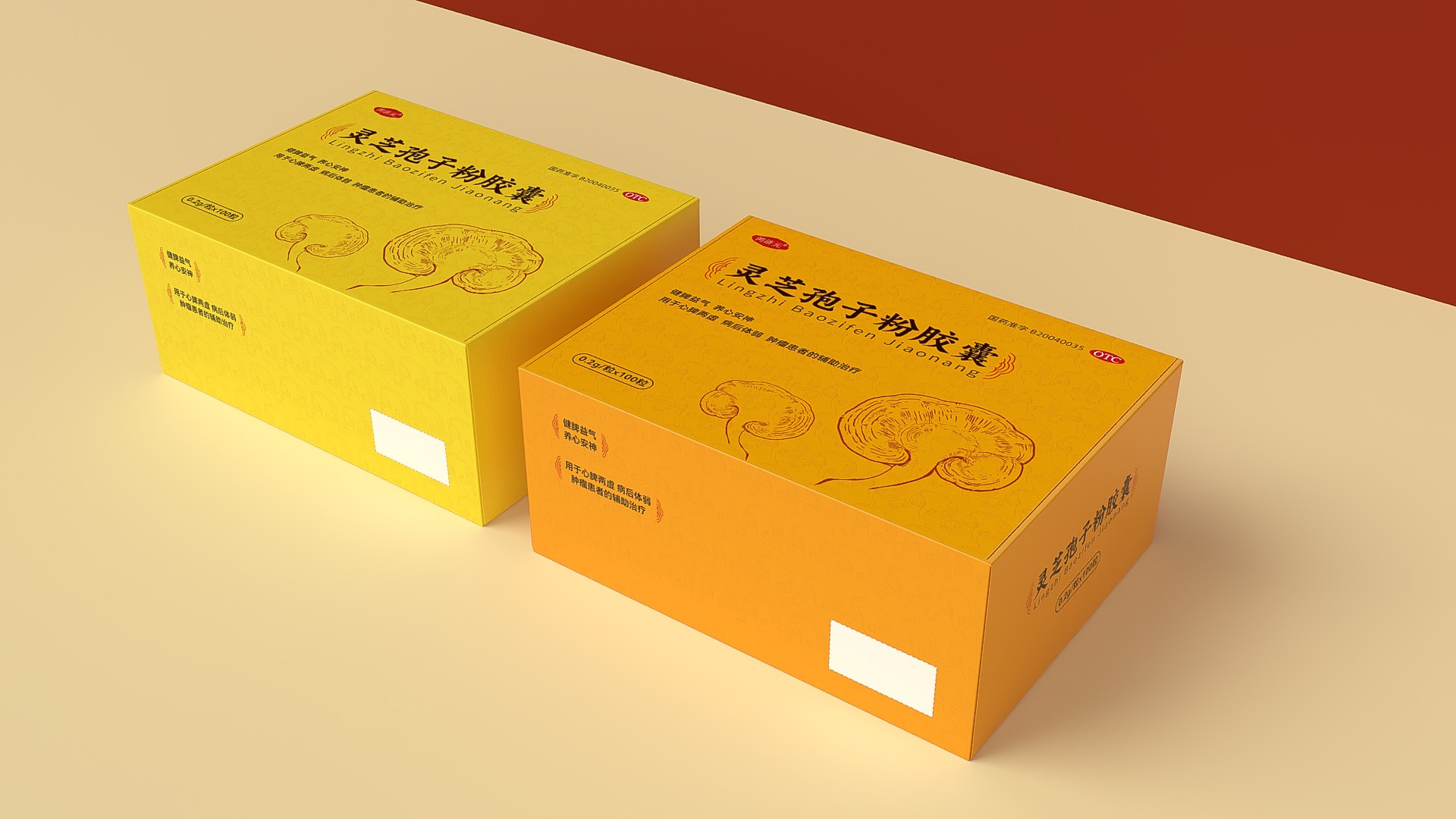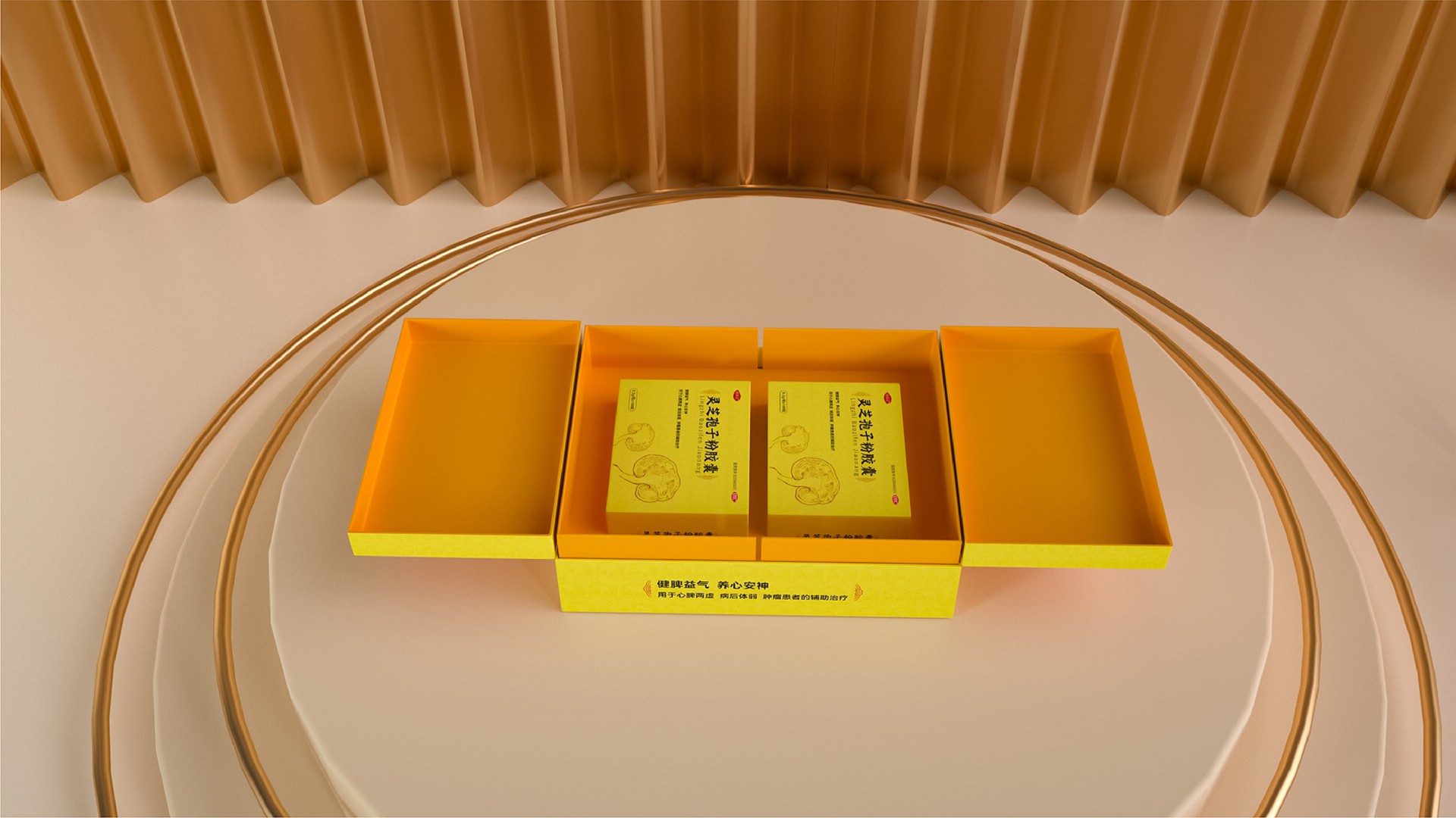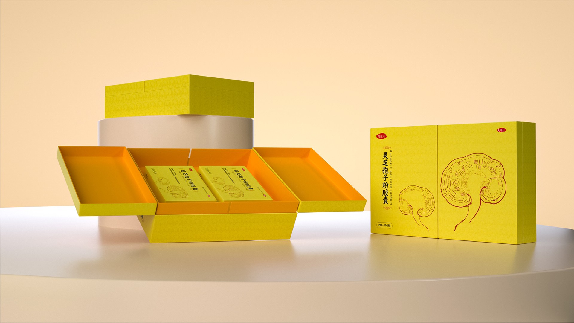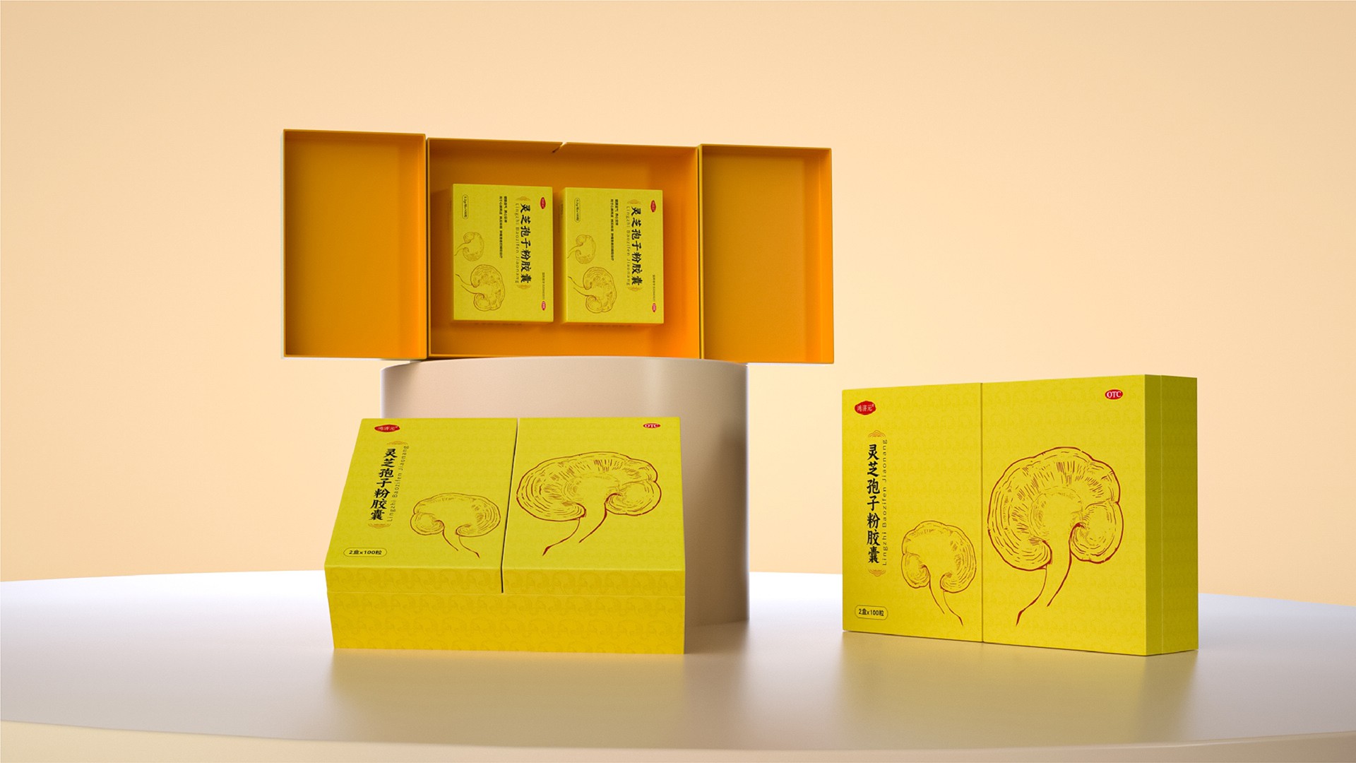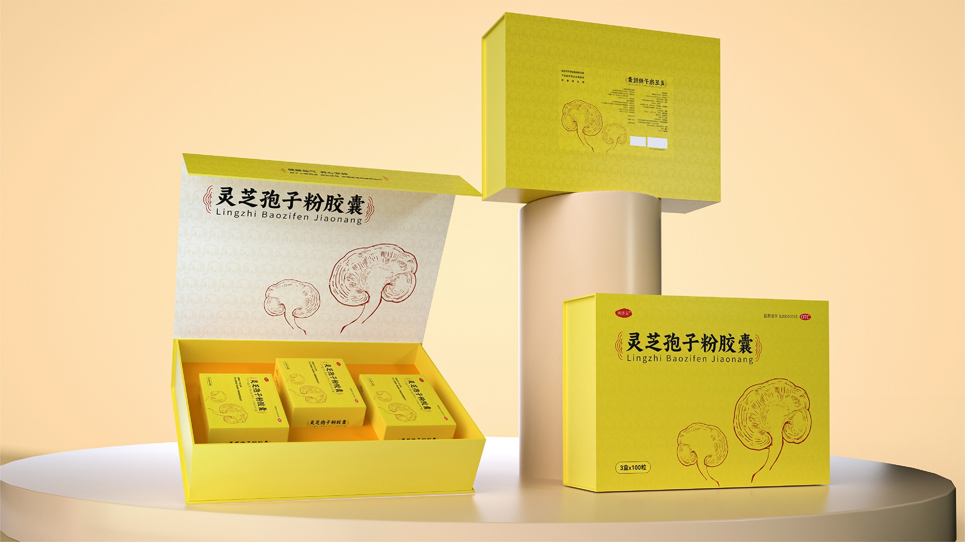 這款靈芝孢子粉膠囊的禮盒設(shè)計,充分融合了現(xiàn)代審美與傳統(tǒng)文化元素,既彰顯了產(chǎn)品的專業(yè)品質(zhì),又凸顯了禮盒的高端定位。