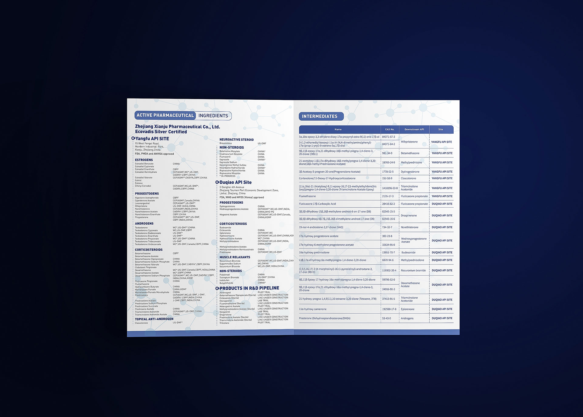本項(xiàng)目是石特大健康為浙江仙琚制藥股份有限公司策劃設(shè)計(jì)的系列藥品原料藥外銷(xiāo)宣傳DA折頁(yè)。與面向終端患者或臨床醫(yī)生的設(shè)計(jì)不同,原料藥宣傳品的核心受眾是國(guó)際制藥公司的采購(gòu)決策者、質(zhì)量部門(mén)及研發(fā)人員。我們的核心任務(wù)是為仙琚制藥的多種原料藥打造一套專業(yè)、嚴(yán)謹(jǐn)、且符合國(guó)際規(guī)范的技術(shù)營(yíng)銷(xiāo)工具,旨在全球供應(yīng)鏈中清晰展示其產(chǎn)品在質(zhì)量、合規(guī)、工藝及供應(yīng)鏈穩(wěn)定性等方面的核心優(yōu)勢(shì),建立深度信任感,從而在激烈的國(guó)際競(jìng)爭(zhēng)中贏得合作機(jī)會(huì)。