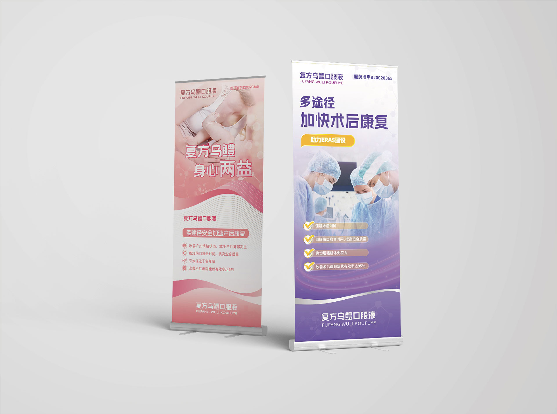 1. 設(shè)計(jì)策略:科學(xué)+人文,打造專業(yè)與溫度兼具的視覺(jué)語(yǔ)言 核心定位:以“科學(xué)驗(yàn)證+人文關(guān)懷”為主線,突出產(chǎn)品功效與品牌信任感。 視覺(jué)風(fēng)格:采用藍(lán)綠色調(diào),象征健康與活力,搭配中醫(yī)元素(如草本圖案),強(qiáng)化產(chǎn)品天然屬性。 信息分層:通過(guò)圖標(biāo)、數(shù)據(jù)圖表等形式,將復(fù)雜的藥理信息可視化,提升閱讀體驗(yàn)。 2. DA折頁(yè)設(shè)計(jì):精準(zhǔn)觸達(dá),高效傳遞產(chǎn)品價(jià)值 封面設(shè)計(jì):以產(chǎn)品核心功效“增強(qiáng)免疫”為標(biāo)題,搭配鳥鱧形象插畫,吸引目標(biāo)受眾注意。 內(nèi)頁(yè)布局: 產(chǎn)品介紹:清晰展示成分、功效、適用人群等信息,突出“中藥制劑”的安全性。 臨床數(shù)據(jù):引用權(quán)威機(jī)構(gòu)認(rèn)證數(shù)據(jù),增強(qiáng)可信度。 使用場(chǎng)景:通過(guò)場(chǎng)景化插圖(如家庭、辦公場(chǎng)景),拉近與消費(fèi)者的距離。 工藝選擇:采用環(huán)保紙張與啞光覆膜工藝,提升質(zhì)感與耐用性。 3. 易拉寶設(shè)計(jì):場(chǎng)景化營(yíng)銷,強(qiáng)化品牌記憶 主視覺(jué):以“免疫力提升”為核心主題,搭配動(dòng)態(tài)線條與產(chǎn)品實(shí)物圖,營(yíng)造視覺(jué)沖擊力。 內(nèi)容策劃: 核心賣點(diǎn):突出“天然成分”“科學(xué)驗(yàn)證”“便捷服用”三大優(yōu)勢(shì)。 品牌故事:簡(jiǎn)述品牌歷史與研發(fā)實(shí)力,增強(qiáng)信任感。 促銷信息:結(jié)合節(jié)日或活動(dòng),設(shè)計(jì)限時(shí)優(yōu)惠內(nèi)容,促進(jìn)轉(zhuǎn)化。 尺寸與材質(zhì):采用80cm×200cm標(biāo)準(zhǔn)尺寸,搭配高精度噴繪,確保畫面清晰度。 4. 系列化延展:統(tǒng)一視覺(jué),強(qiáng)化品牌識(shí)別 視覺(jué)統(tǒng)一:DA折頁(yè)與易拉寶采用一致的色彩體系、字體風(fēng)格與圖形元素,形成品牌記憶點(diǎn)。 多場(chǎng)景應(yīng)用:設(shè)計(jì)適用于藥店、展會(huì)、醫(yī)院等不同場(chǎng)景的版本,滿足多樣化需求。 數(shù)字化適配:提供電子版折頁(yè)與易拉寶設(shè)計(jì),便于線上傳播與分享。