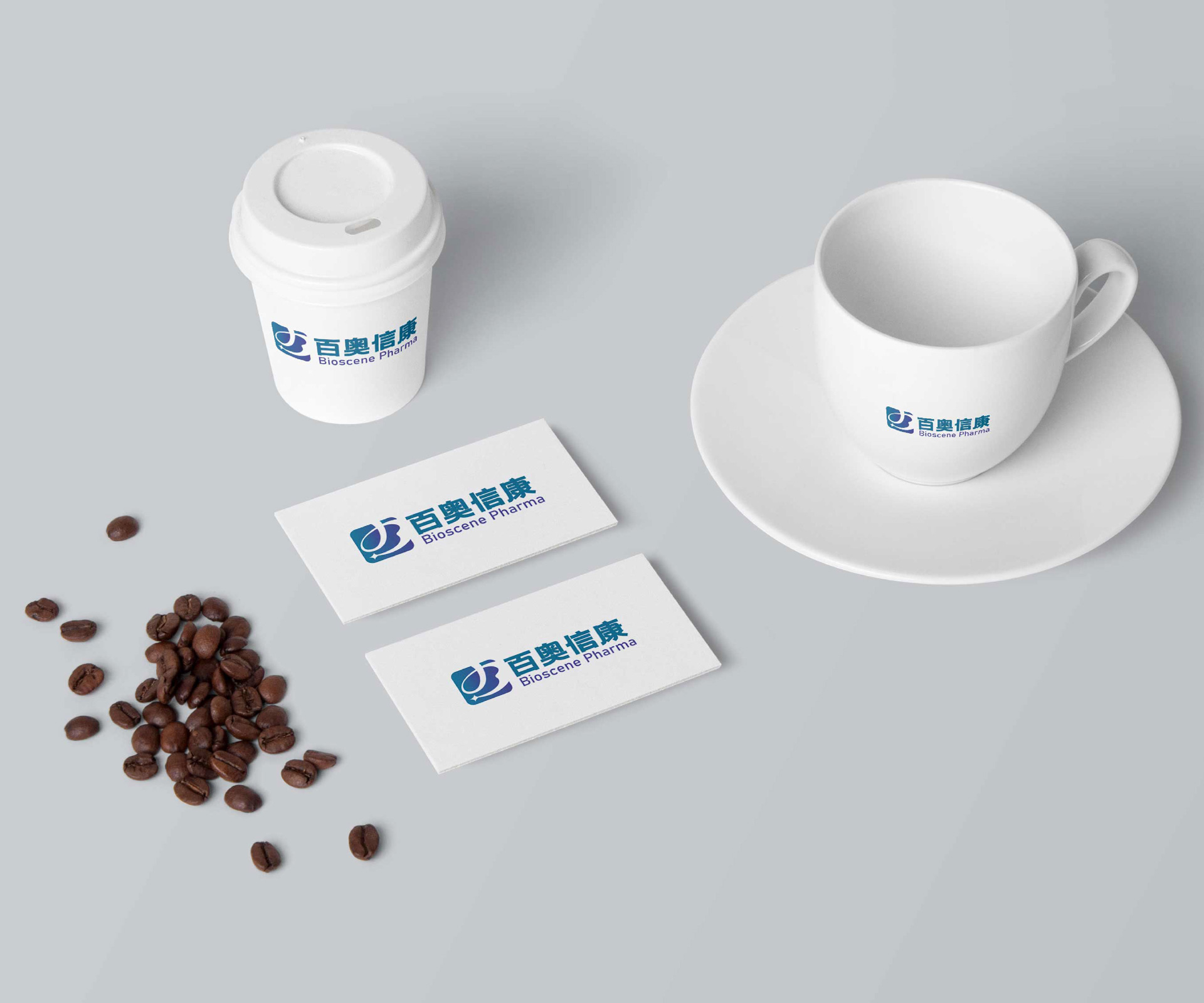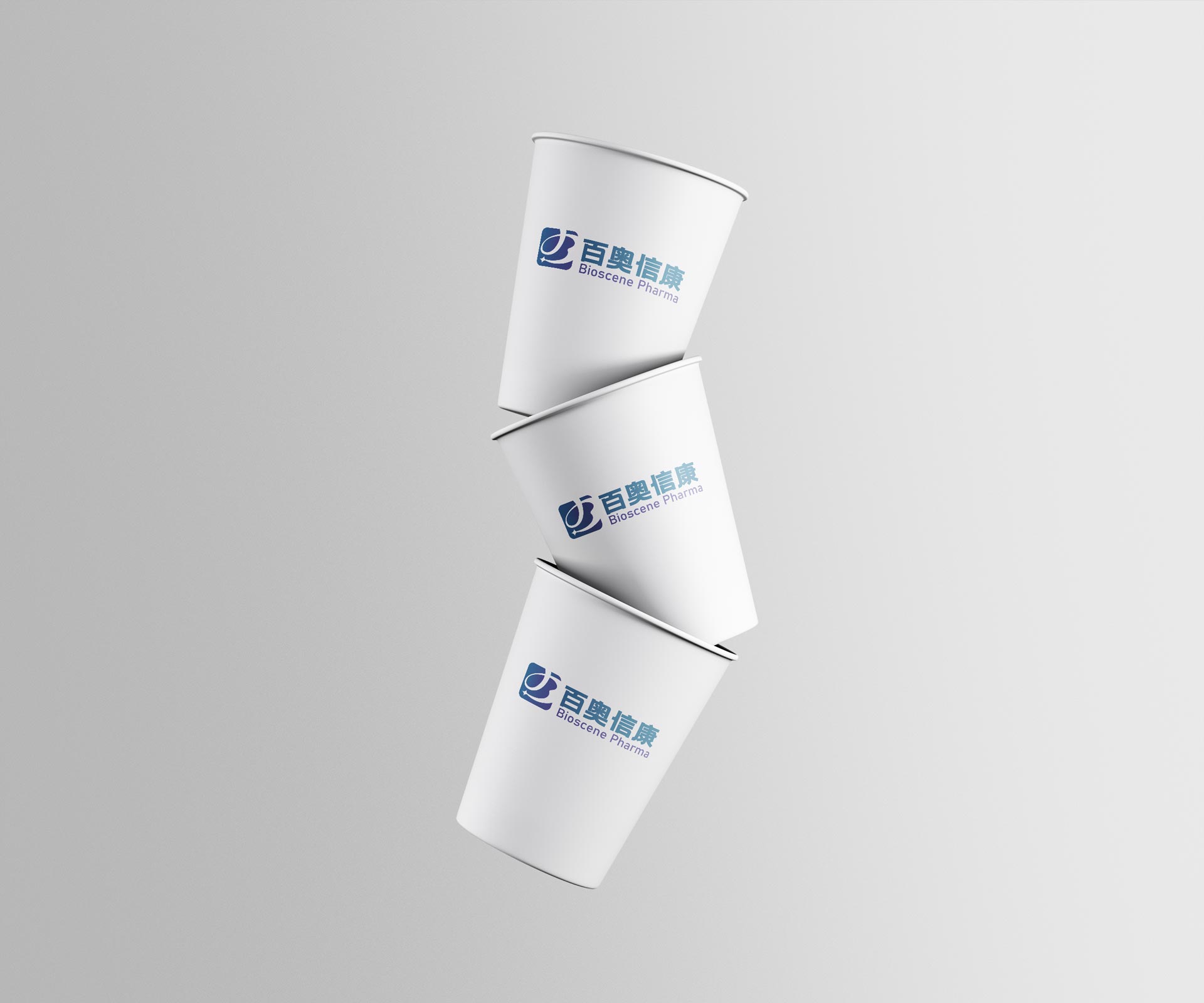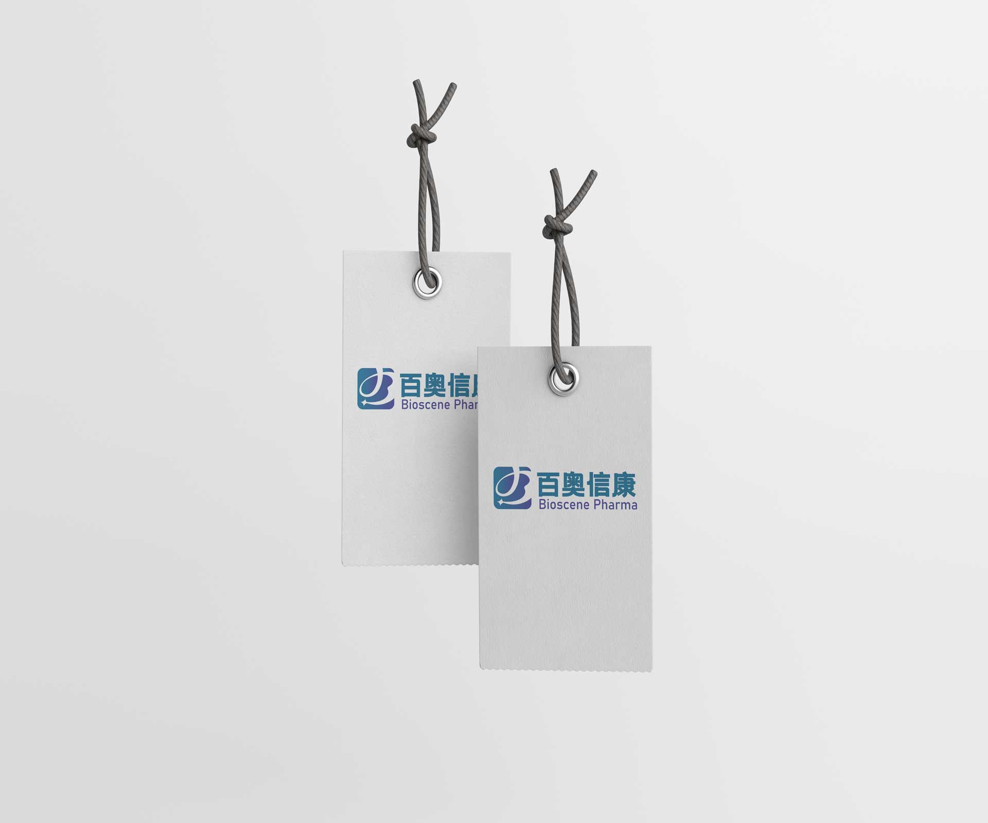 中英文品牌名稱“百奧信康”與“Bioscene Pharma”以專業(yè)字體搭配,清晰易讀,強(qiáng)化品牌識(shí)別。